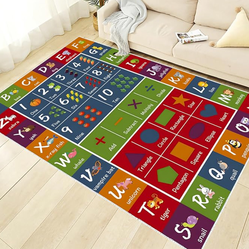 This rug is specially designed for early education spaces. Teachers can use it as a teaching tool for alphabet recognition, counting, color learning, and interactive group activities. The rug’s vibrant colors and clear educational elements make it a perfect addition to preschools and libraries.
